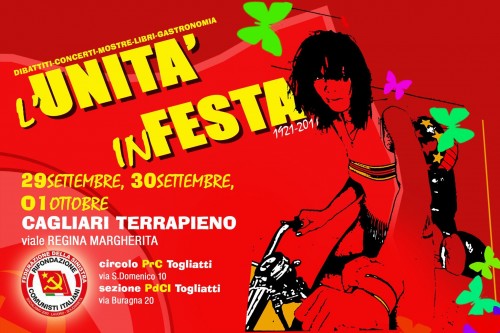 Il 29-30 settembre e 1 ottobre, al Terrapieno di Cagliari, l’Unità in festa.