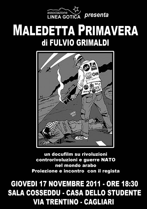 Incontro con il giornalista e autore del film Fulvio Grimaldi per discutere della drammatica aggressione alla Libia ma anche delle recenti cosidette “Rivolte Arabe”.