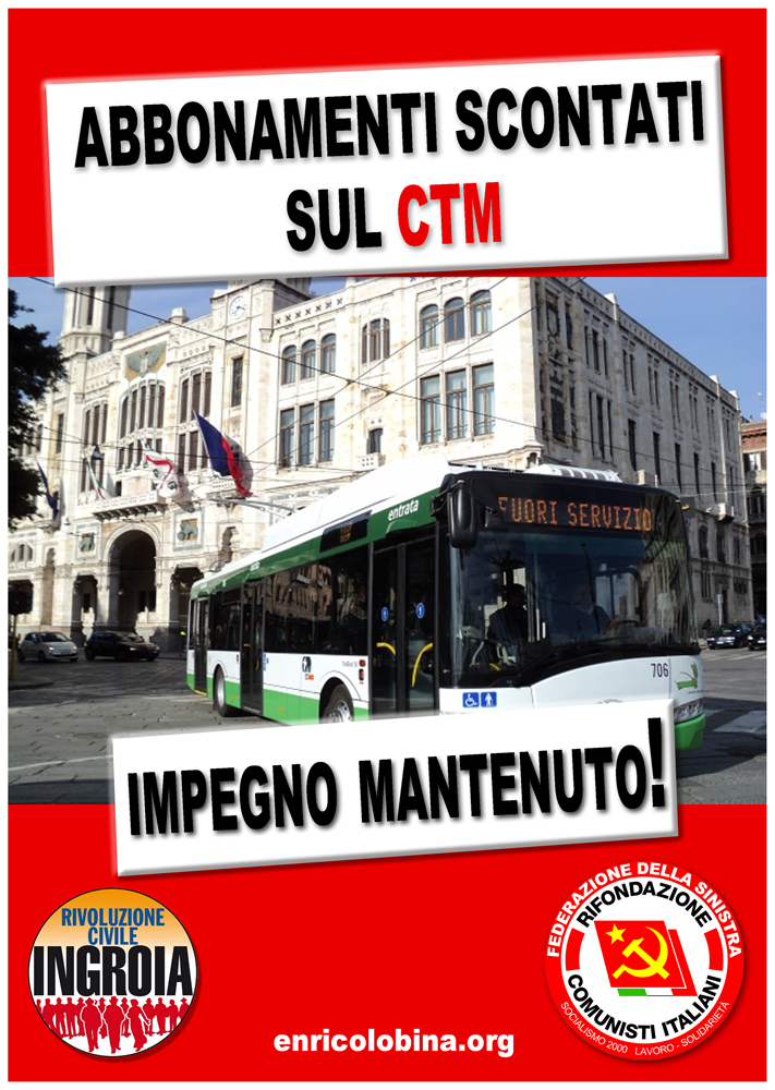 Il Comune di Cagliari stanzia 75.000 euro per scontare del 50% gli abbonamenti annuali e semestrali CTM destinati a coloro che abbiano un reddito inferiore ai 10.000 euro. Si tratta di un provvedimento politico fortemente voluto da tutta la “Federazione della Sinistra” (FdS).