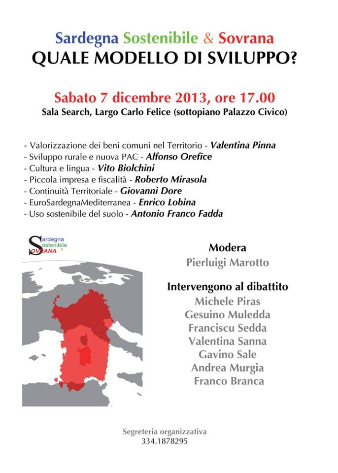 Vi invito, quindi, al dibattito di sabato 7 dicembre, ore 17 che si terrà presso la sala Search nel sotto piano del Comune di Cagliari. Al link http://www.enricolobina.org/wp/2013/12/04/sabato-7-dicembre-sardegna-sostenibile-e-sovrana-che-sardegna-vogliamo/ potete trovare il programma completo.