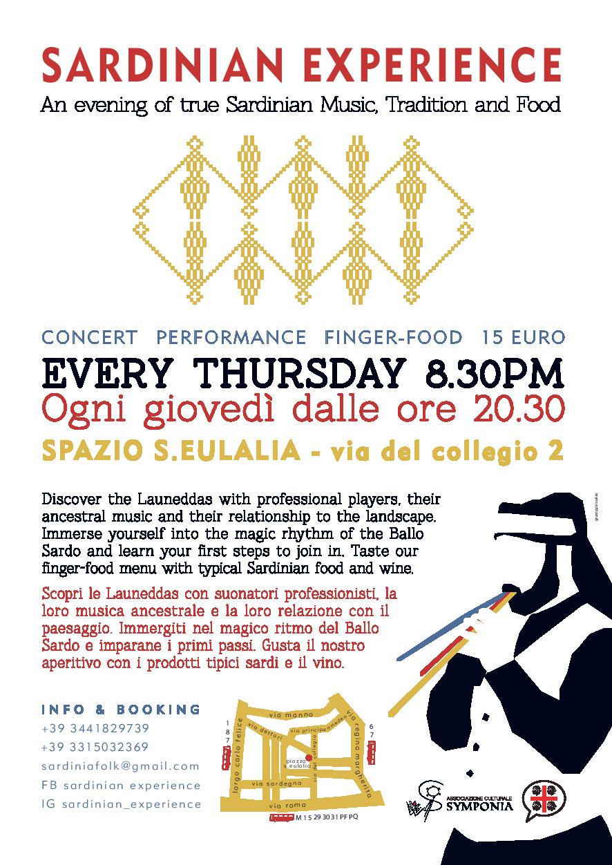La formula è rimasta identica. Con un prezzo promozionale (15 euro), proporremo suonatori di launeddas ed altri strumenti tradizionali che, insieme a ballerini di ballo sardo ed una voce narrante in lingua italiana ed inglese, presenteranno una introduzione alle arti tradizionali sarde.